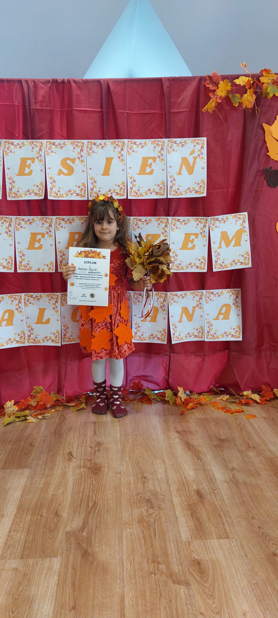 Wiktoria z ogromnym zaangażowaniem i urokiem zaprezentowała wiersz pt. „Jesienna gimnastyka”, za który otrzymała Wyróżnienie.
